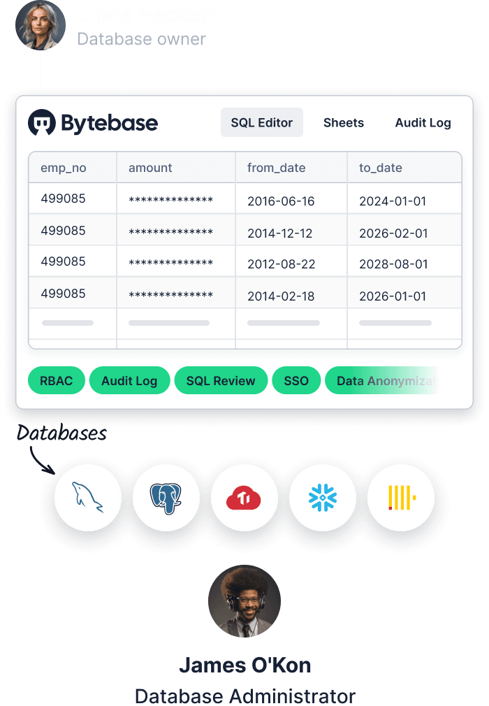 Query with auto-completeJust-in-time data accessMask data on the flyRecord audit logs